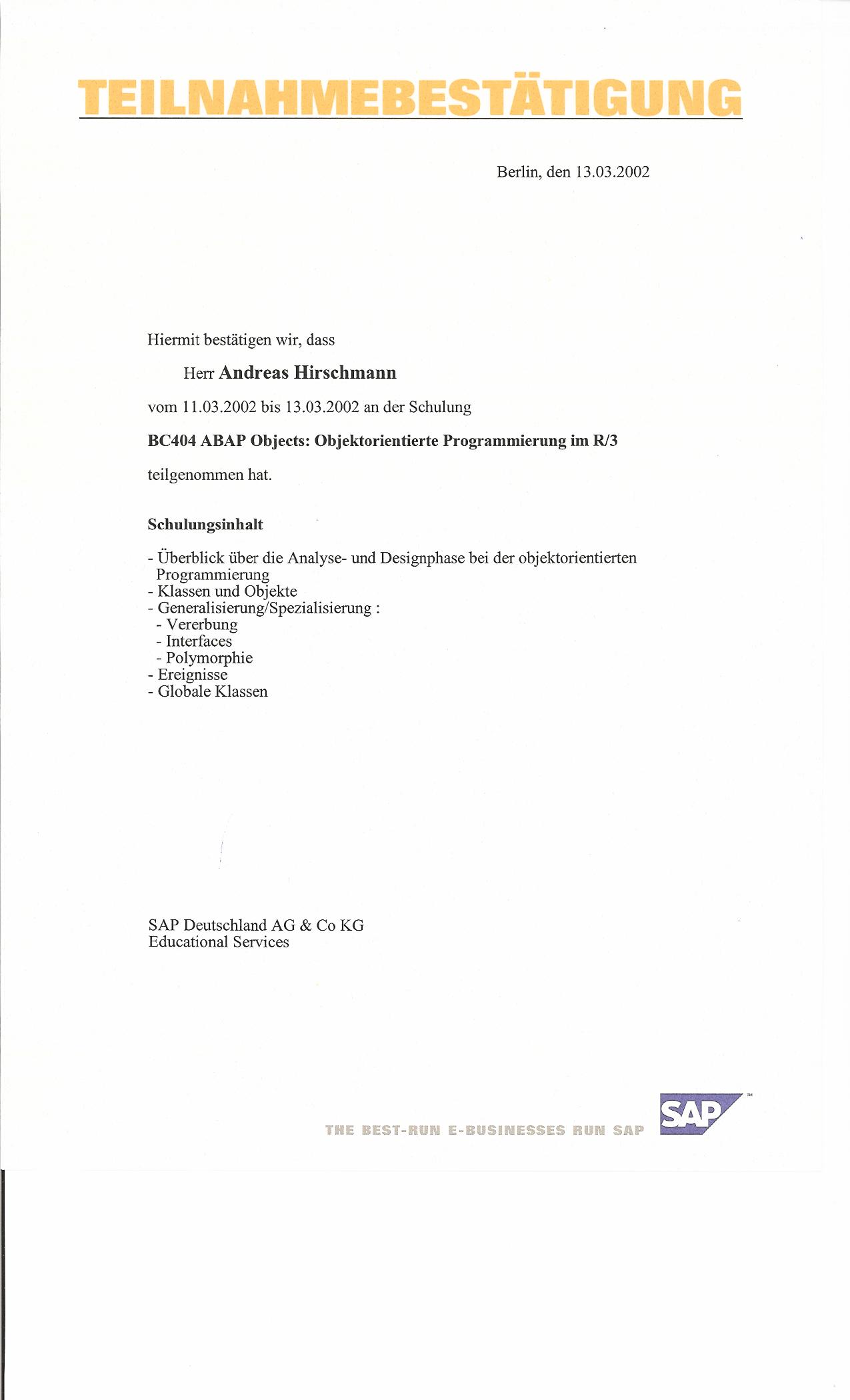 BC404 ABAP Objects: Objektorientierte Programmierung